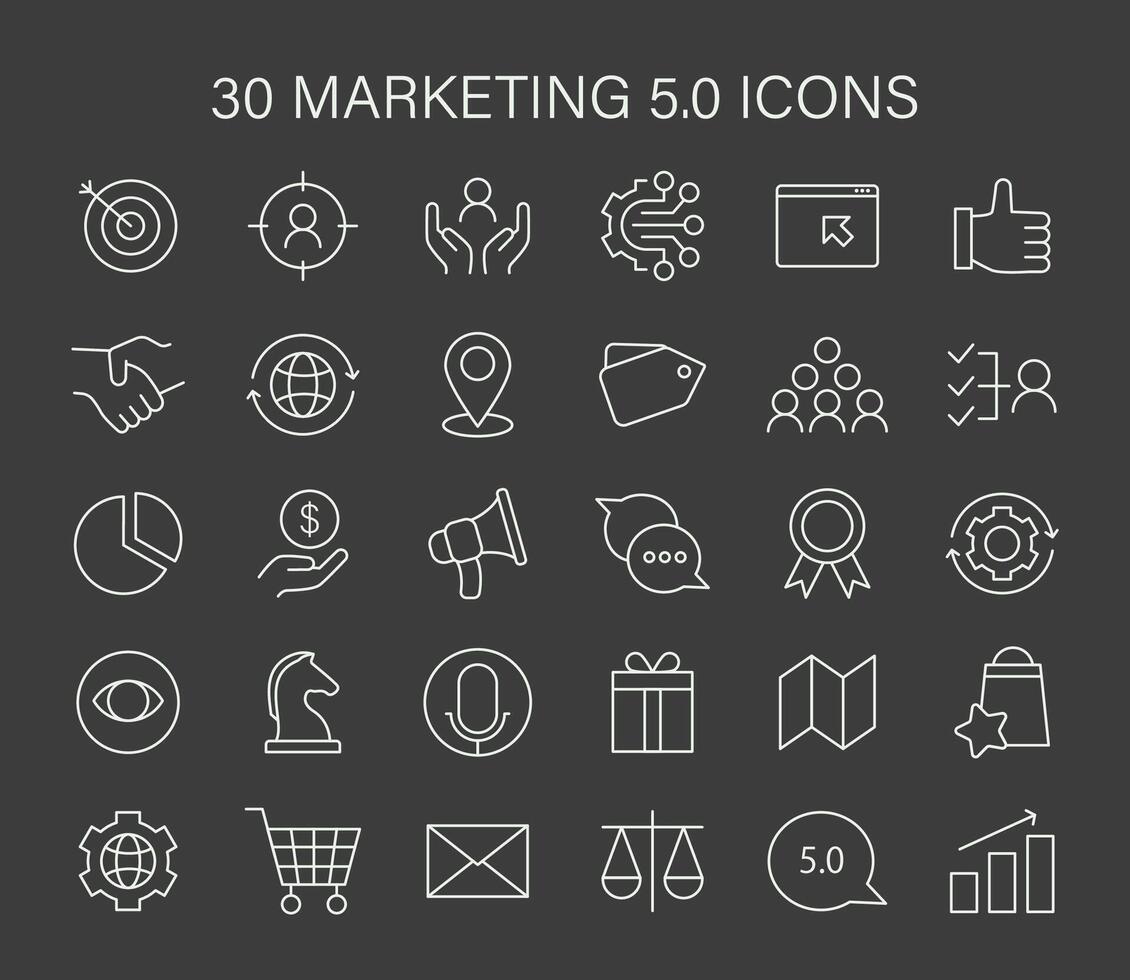 Marketing 5.0 icon set. Essential visual elements representing advanced digital marketing Pro Vector