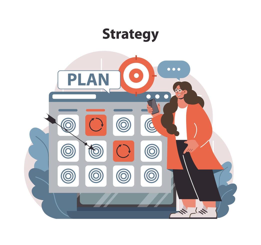 Constructing a Strategy using a methodical approach. Flat vector illustration Pro Vector