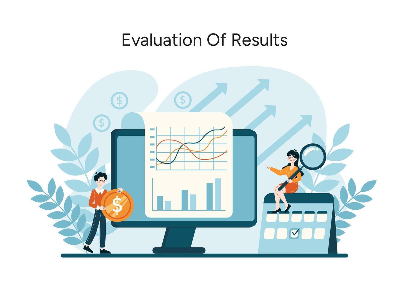 Intensive scrutiny of financial outcomes using key metrics Pro Vector