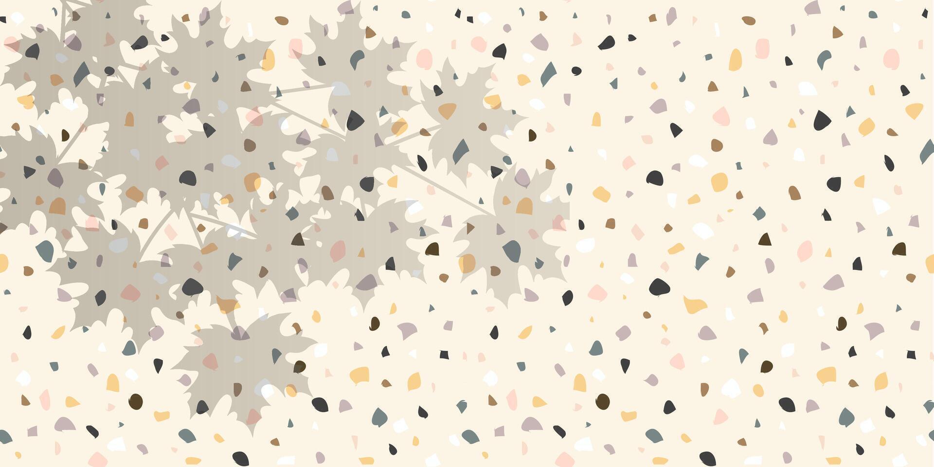 Venetian style terrazzo tile flooring plus a gray shadow layer of natural maple leaves tree branch. Vector background Pro Vector