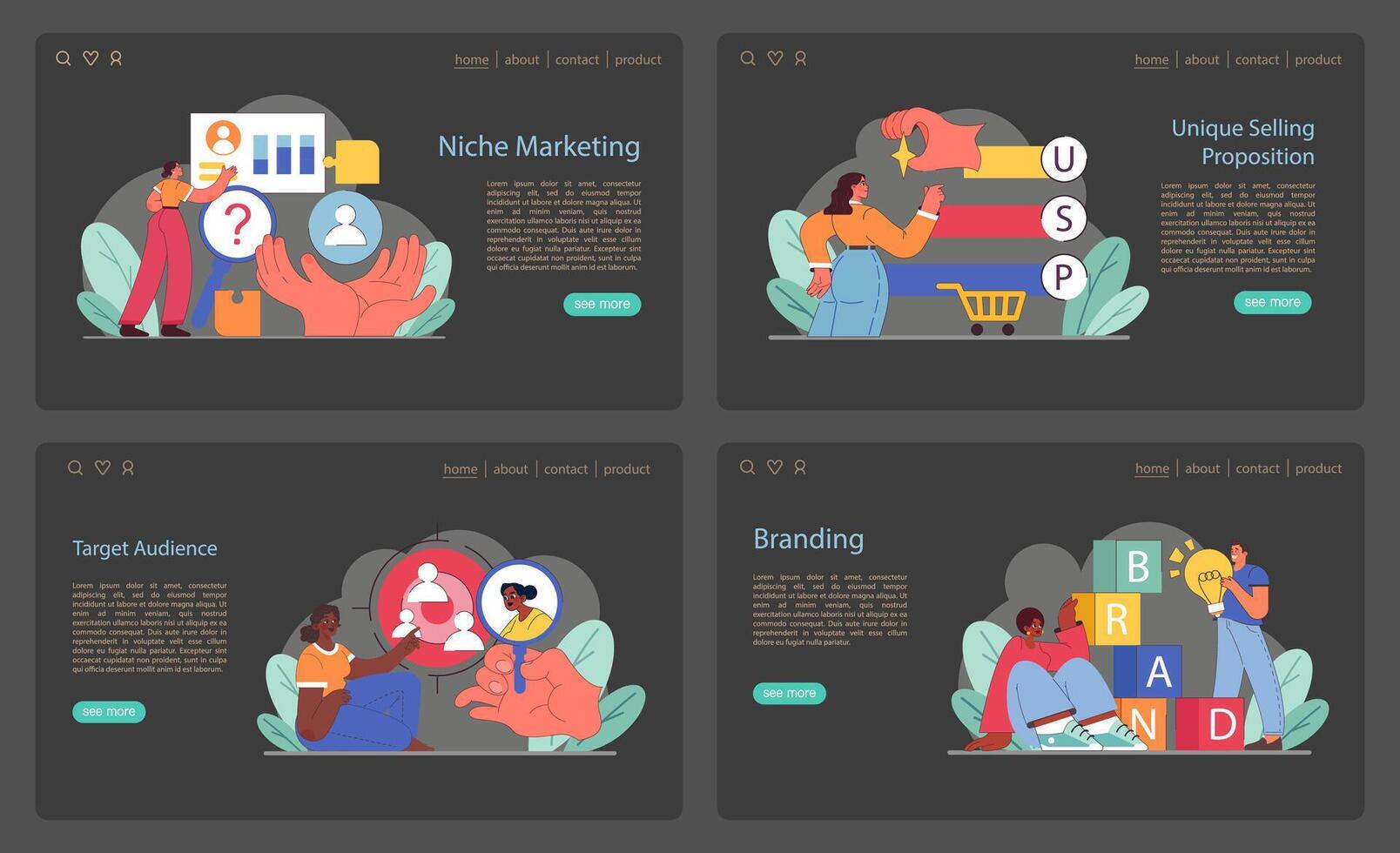 Digital marketing strategy set displayed on a website interface. Pro Vector