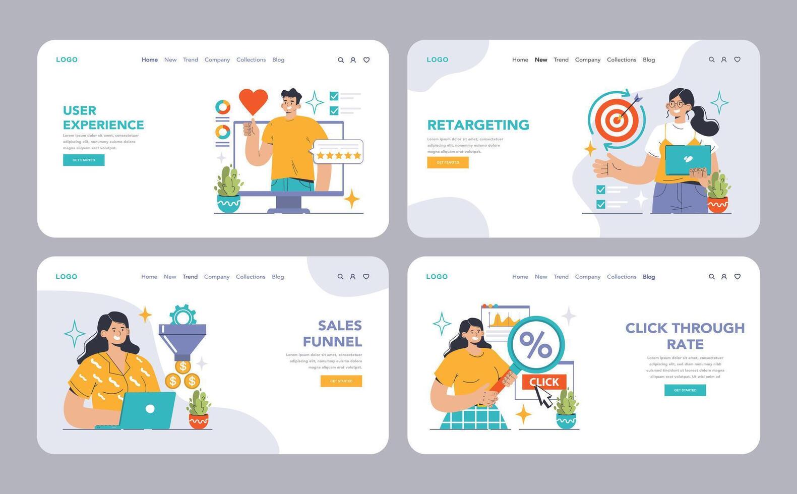 Conversion Rate Optimization set. Experts analyzing website performance Pro Vector