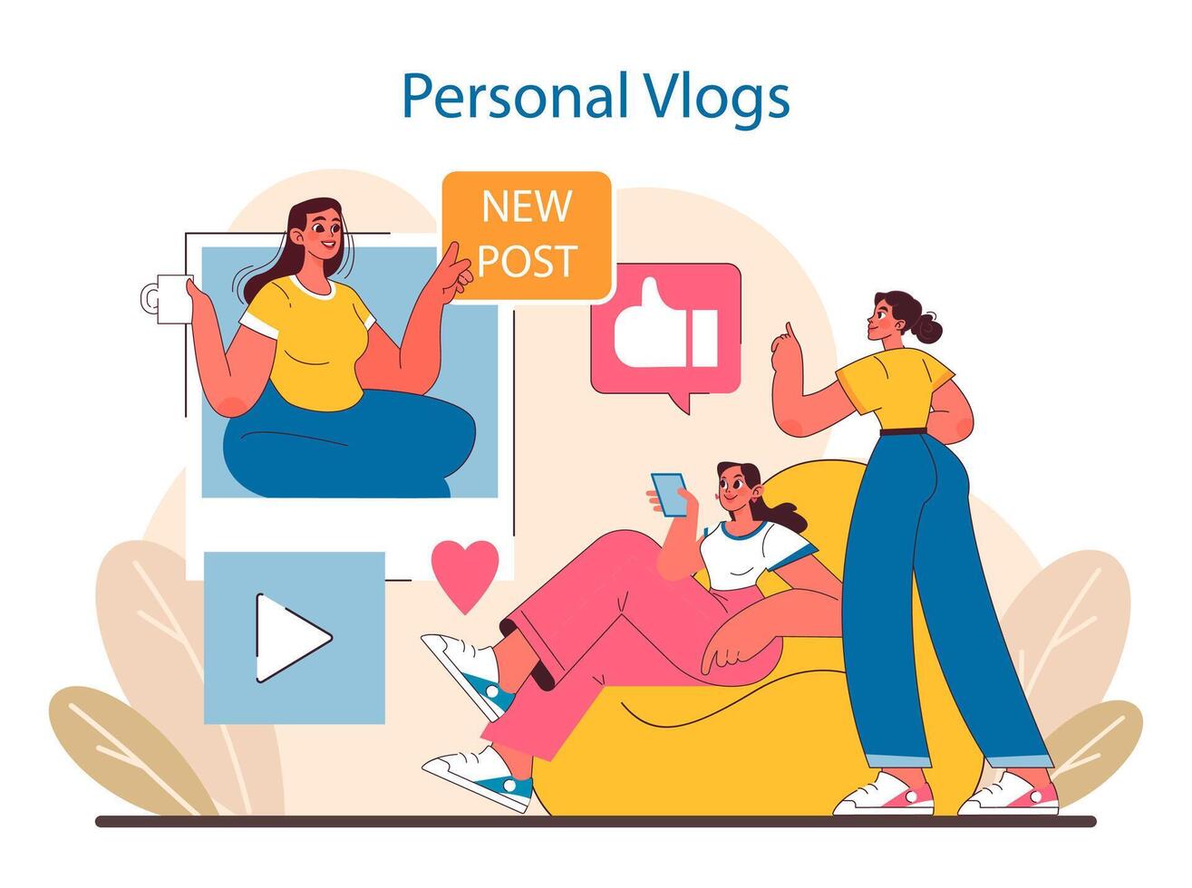 Personal Vlogs concept. Authentic daily life insights shared on digital platforms. Pro Vector