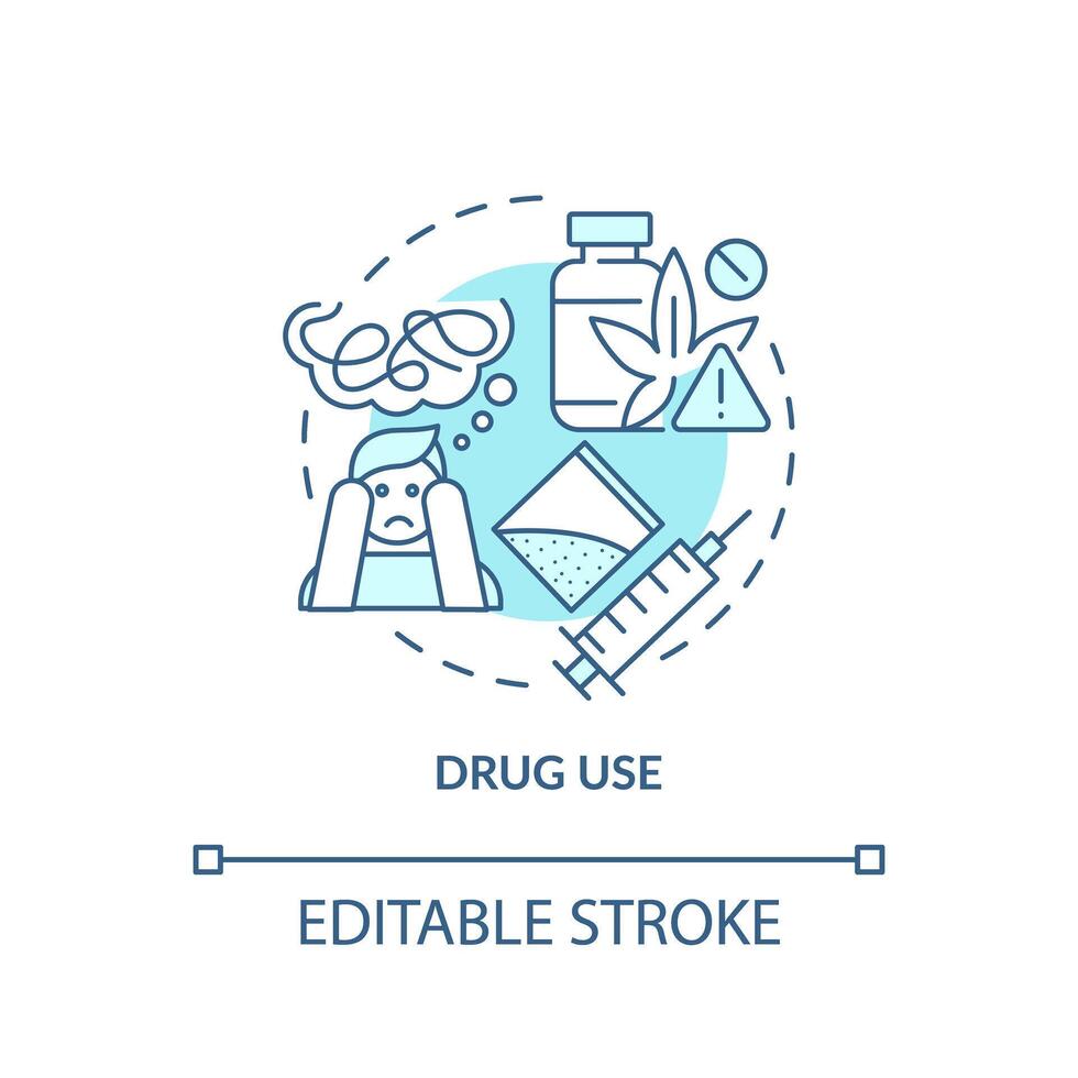 Drug use soft blue concept icon. Health issues, addiction. Life disruption. Round shape line illustration. Abstract idea. Graphic design. Easy to use in infographic, presentation, brochure, booklet Pro Vector