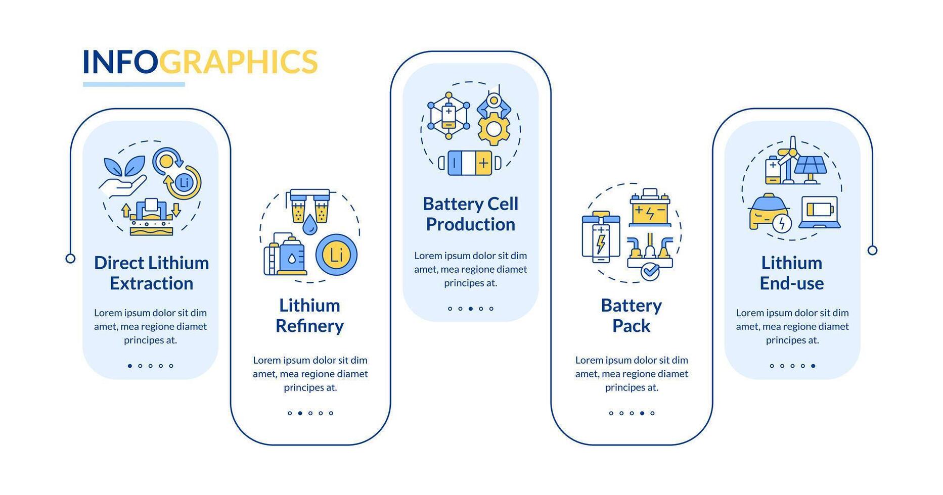 Battery production rectangle infographic template. Energy storage. Data visualization with 5 steps. Editable timeline info chart. Workflow layout with line icons Pro Vector