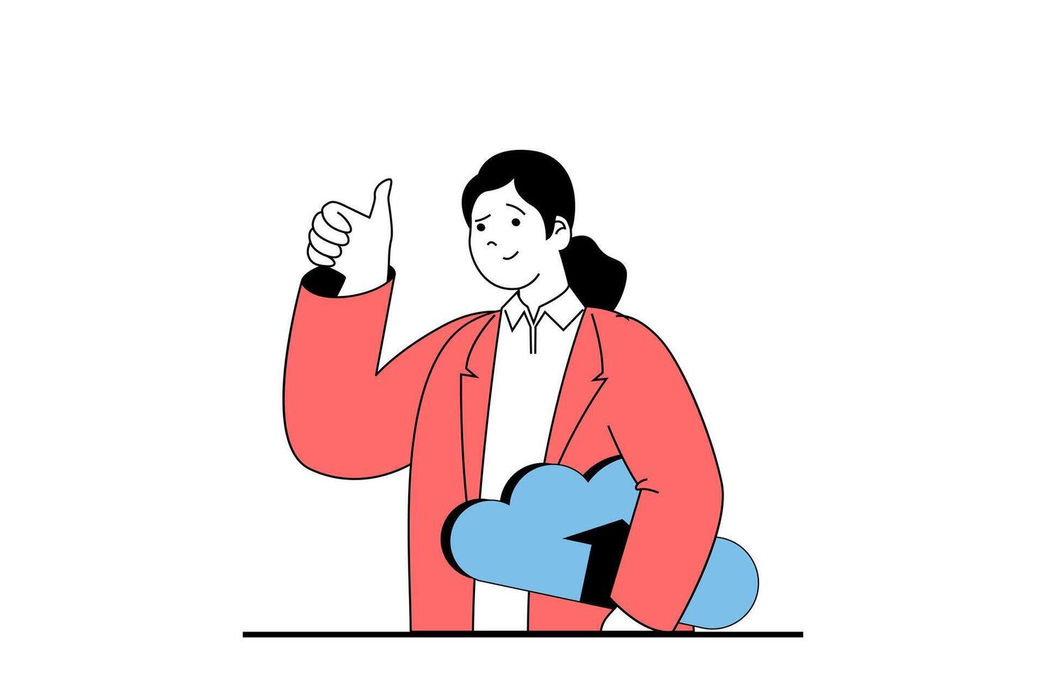 Cloud computing concept with people scene in flat web design. Woman using online processing service and cloud storage on server. Vector illustration for social media banner, marketing material. Pro Vector