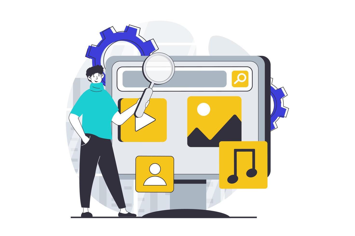 UI UX design concept with people scene in flat graphic for web. Man creating webpage interface responsive layout and editing elements. Vector illustration for social media banner, marketing material. Pro Vector