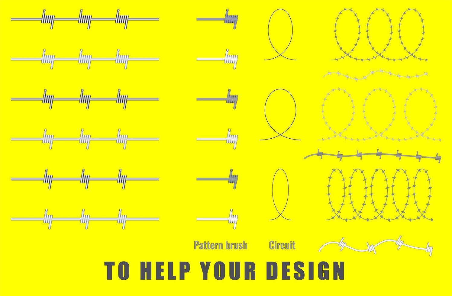 A set of barbed wire with different twisting pitches from different metals. Pro Vector