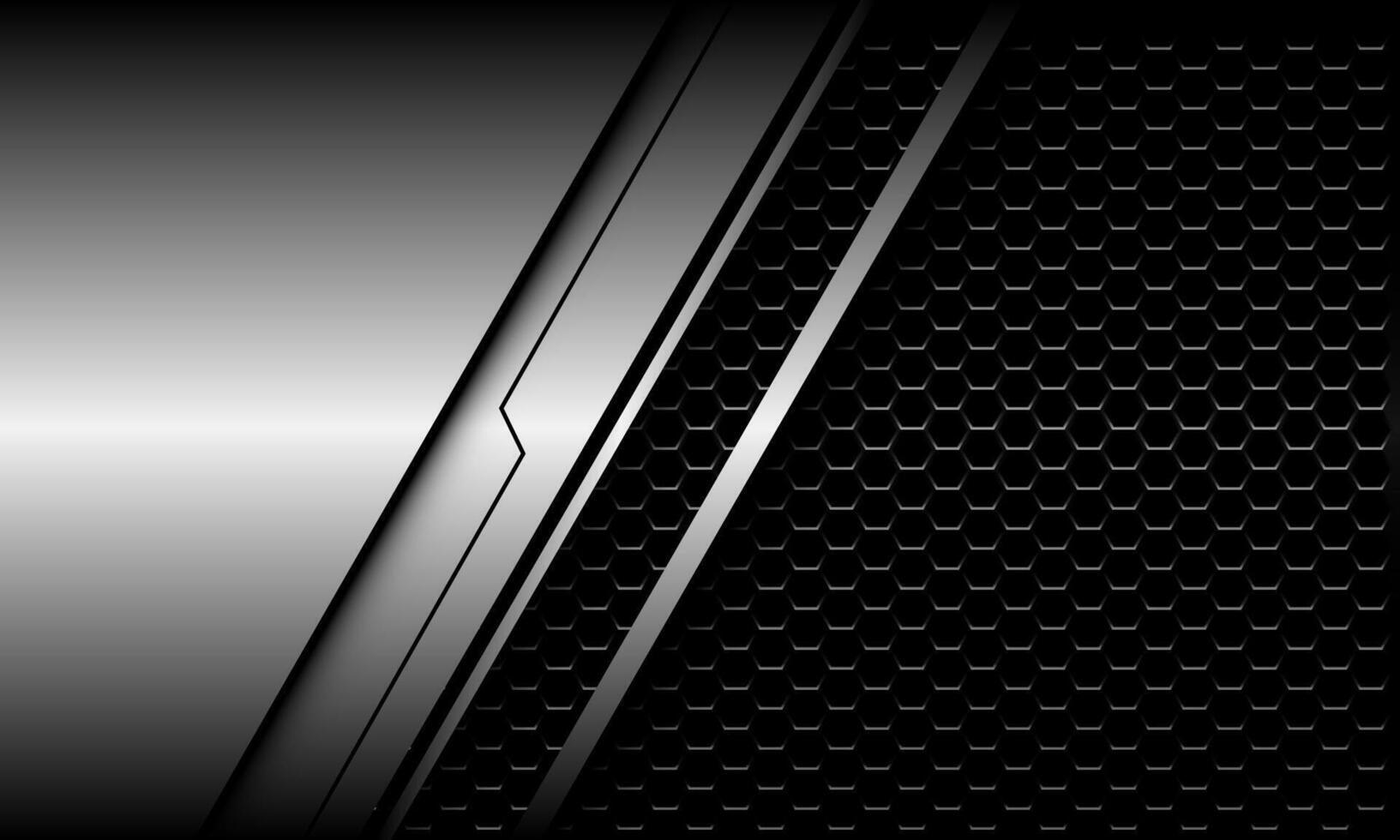 Abstract silver black line cyber geometric on hexagon mesh design modern futuristic technology background vector Pro Vector