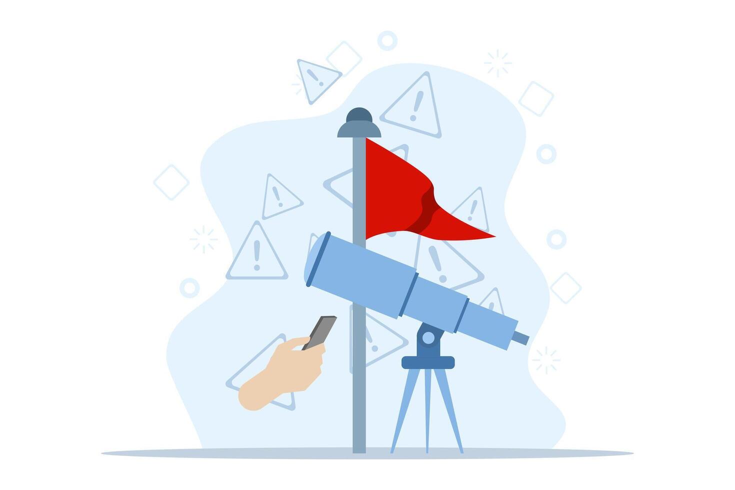 Red flag warning concept, Caution or warning against threats in relationships, partnerships, business, Metaphor of problems, troubles and difficulties, Vector illustration on a white background Pro Vector