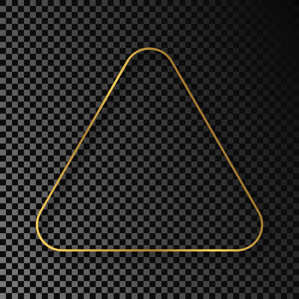 Gold glowing rounded triangle frame with shadow isolated on dark background. Shiny frame with glowing effects. Vector illustration. Pro Vector