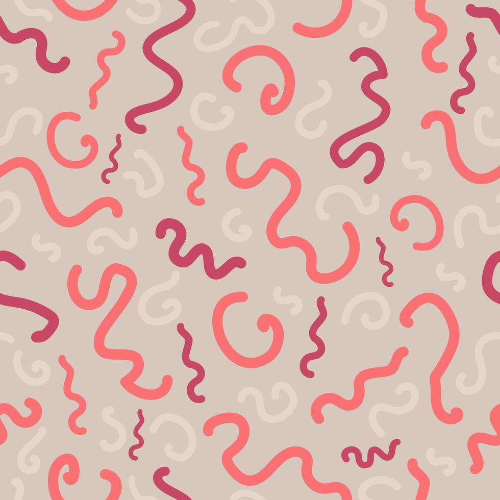 Abstract vector seamless pattern with curvy lines. Peach and mauve doodle lines on subtle beige background. Creative surface art texture for printing on fabric, wrapping, textile, wallpaper, apparel. Pro Vector