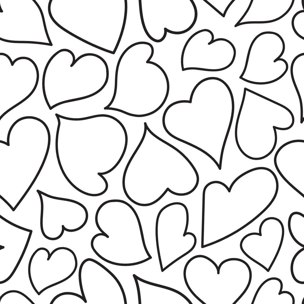 Black contour hearts seamless vector pattern. Simple monochrome ornament with hearts isolated on white backdrop. Elegant and subtle texture for printing on fabric, wrapping, wallpaper, apparel etc. Pro Vector