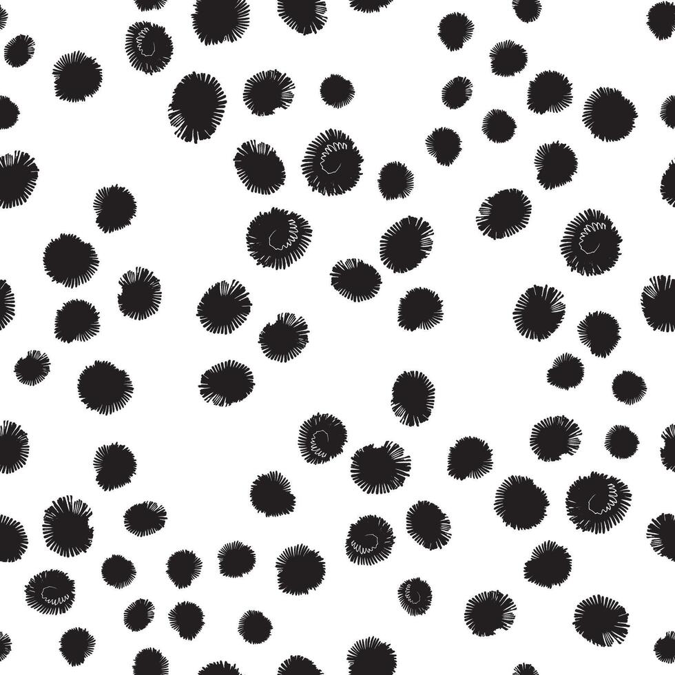 Hand painted spots resembling sea urchins simple vector seamless pattern. Black dots ranging in size on white backdrop. Subtle art texture for printing on various surfaces or usage in graphic design. Pro Vector
