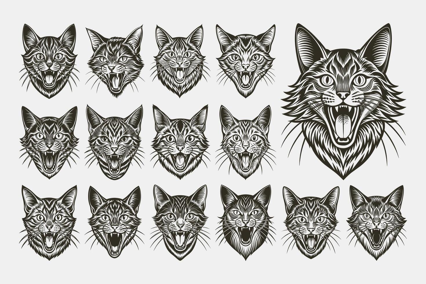 AI generated Funny meowing american bobtail cat in front view design vector set Pro Vector