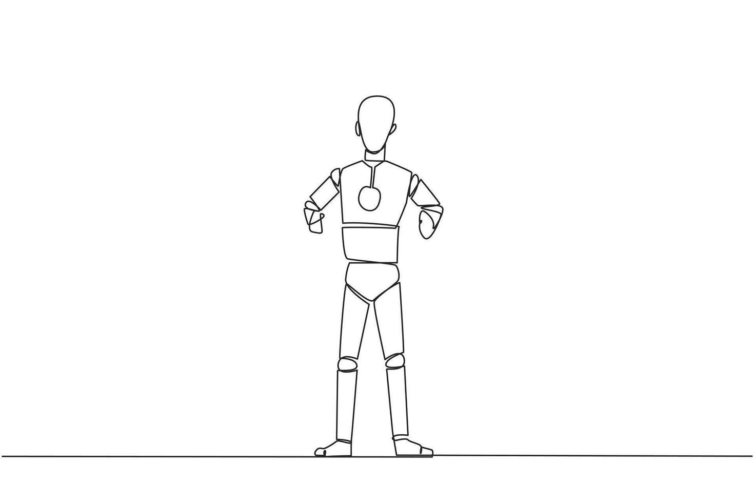 Single continuous line drawing smart robot standing straight. Survive inflation and pandemics. Looking to the future of business is full of hopes of success. Tech. One line design vector illustration Pro Vector