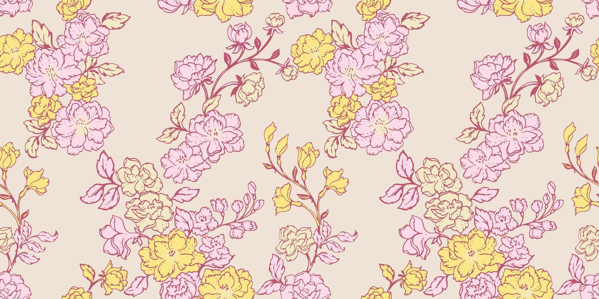 Spring or summer wild meadow seamless pattern. Abstract stylized lines flowers branches patterned on a light background. Vector hand drawn sketch. Collage for printing, design, fabric Pro Vector