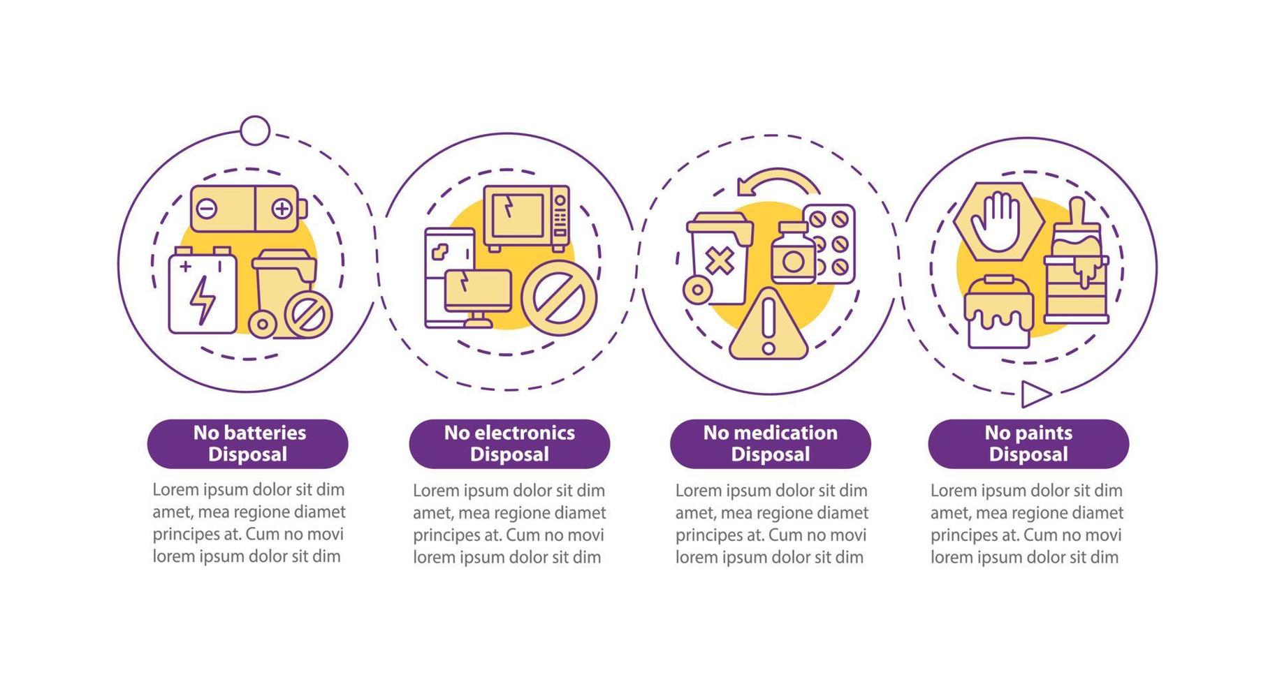 Not accepted waste materials vector infographic template. Presentation outline design elements. Data visualization with 4 steps. Process timeline info chart. Workflow layout with line icons Pro Vector