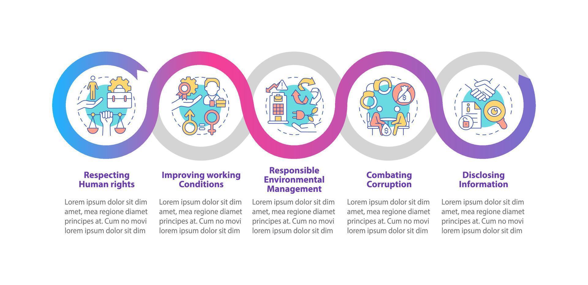 CSR issues vector infographic template. Workplace conditions presentation outline design elements. Data visualization with 5 steps. Process timeline info chart. Workflow layout with line icons Pro Vector