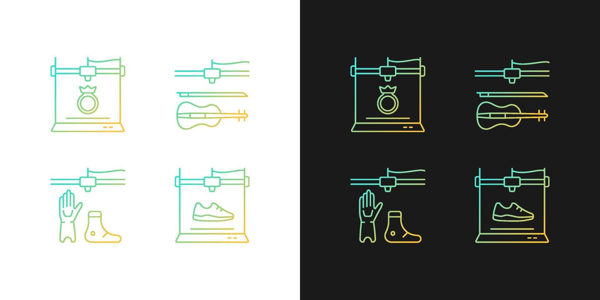 Building 3d objects process gradient icons set for dark and light mode. Jewelry production. Thin line contour symbols bundle. Isolated vector outline illustrations collection on black and white Pro Vector