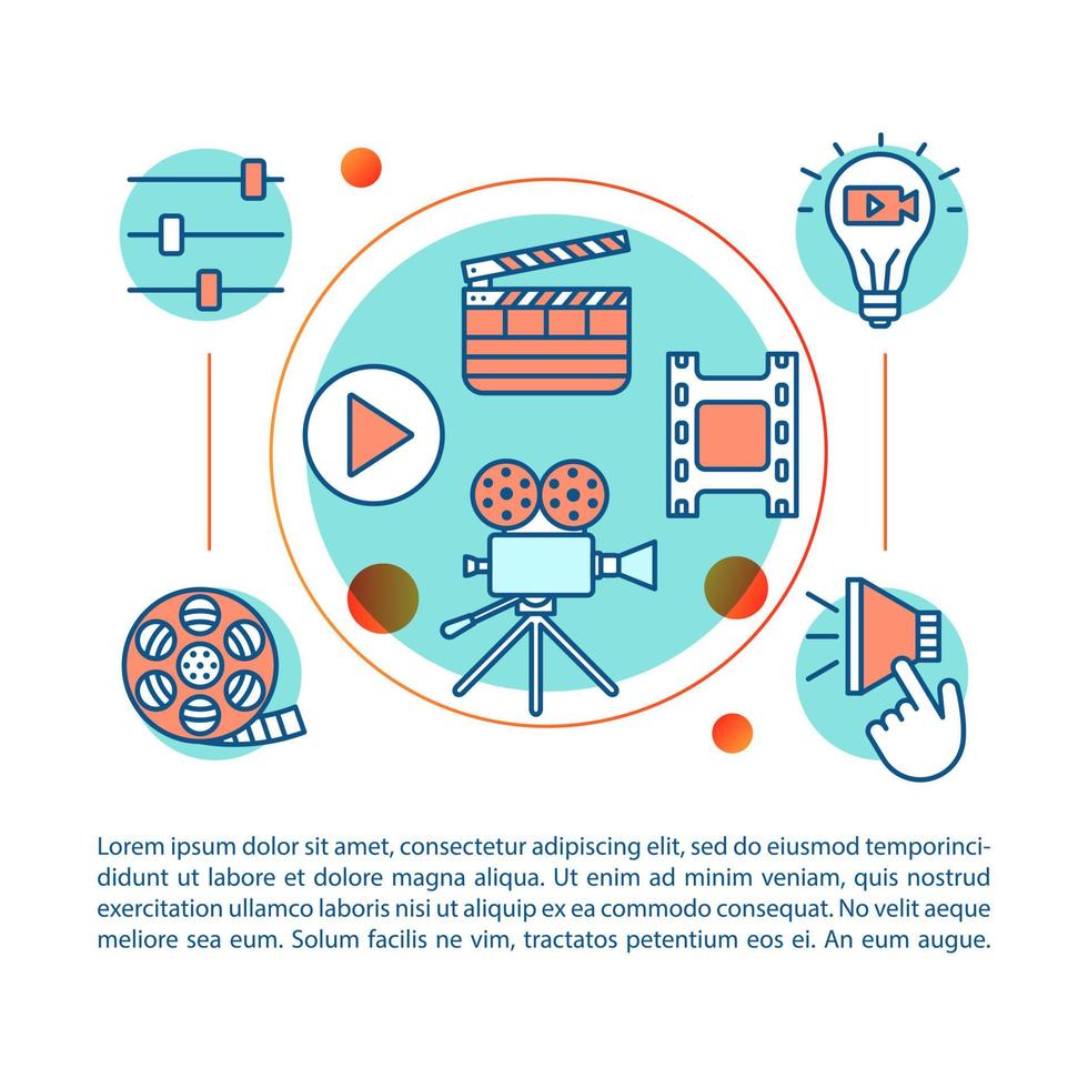 Video production article page vector template. Film making process. Brochure, magazine, booklet design element with linear icons and text boxes. Print design. Concept illustrations with text space Pro Vector
