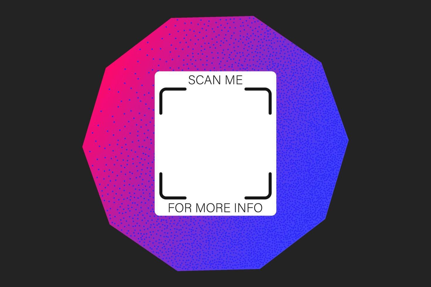 Geometric textured QR code vector element, scan me phone label template. Qr code sticker mockup, Y2K neon rainbow barcode icon on dark background, blue and pink gradient. Pro Vector