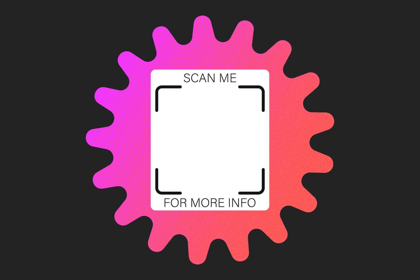 Geometric textured QR code vector element, scan me phone label template. Qr code sticker mockup, Y2K neon rainbow gradient barcode icon on dark background, vibrant pink and orange shape. Pro Vector