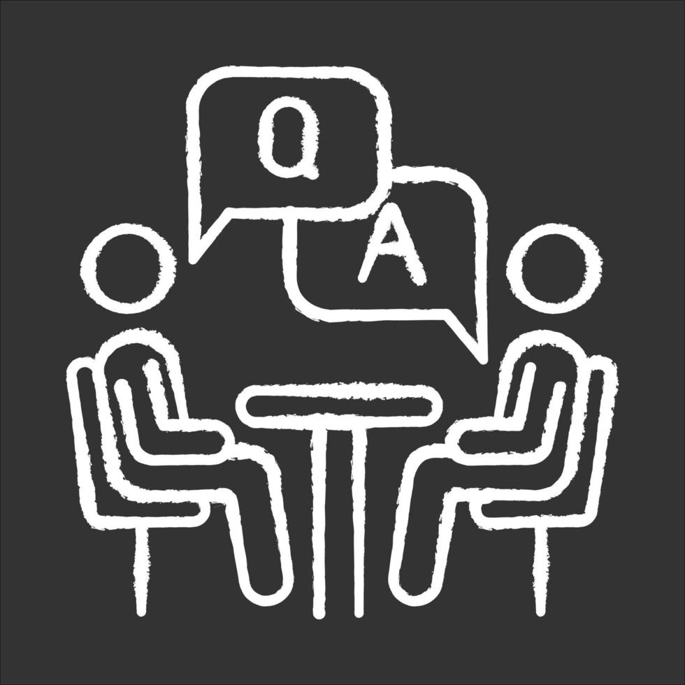 Personal interview survey chalk icon. Questions and answers poll. Social research. Consumer, customer satisfaction. Feedback. Evaluation. Data collection. Isolated vector chalkboard illustration Pro Vector