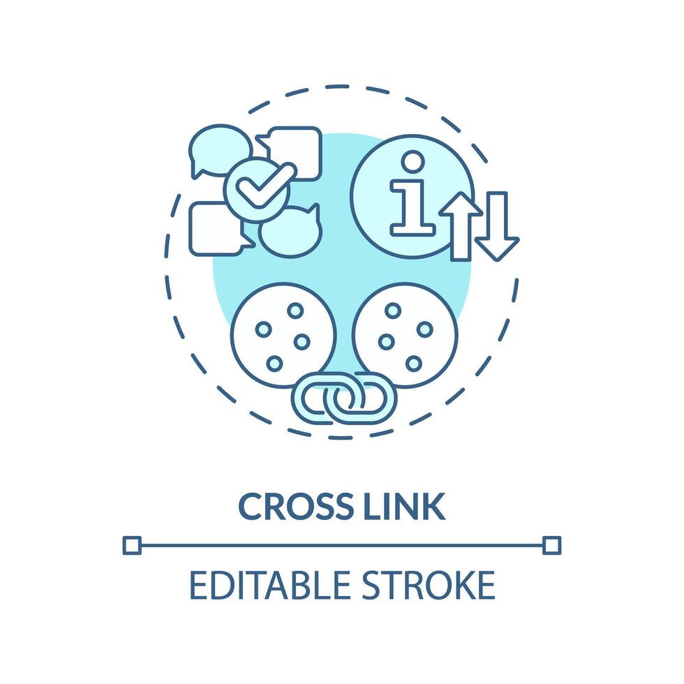 Cross link soft blue concept icon. Communication, connecting and coordination between circles. Round shape line illustration. Abstract idea. Graphic design. Easy to use in promotional material Pro Vector