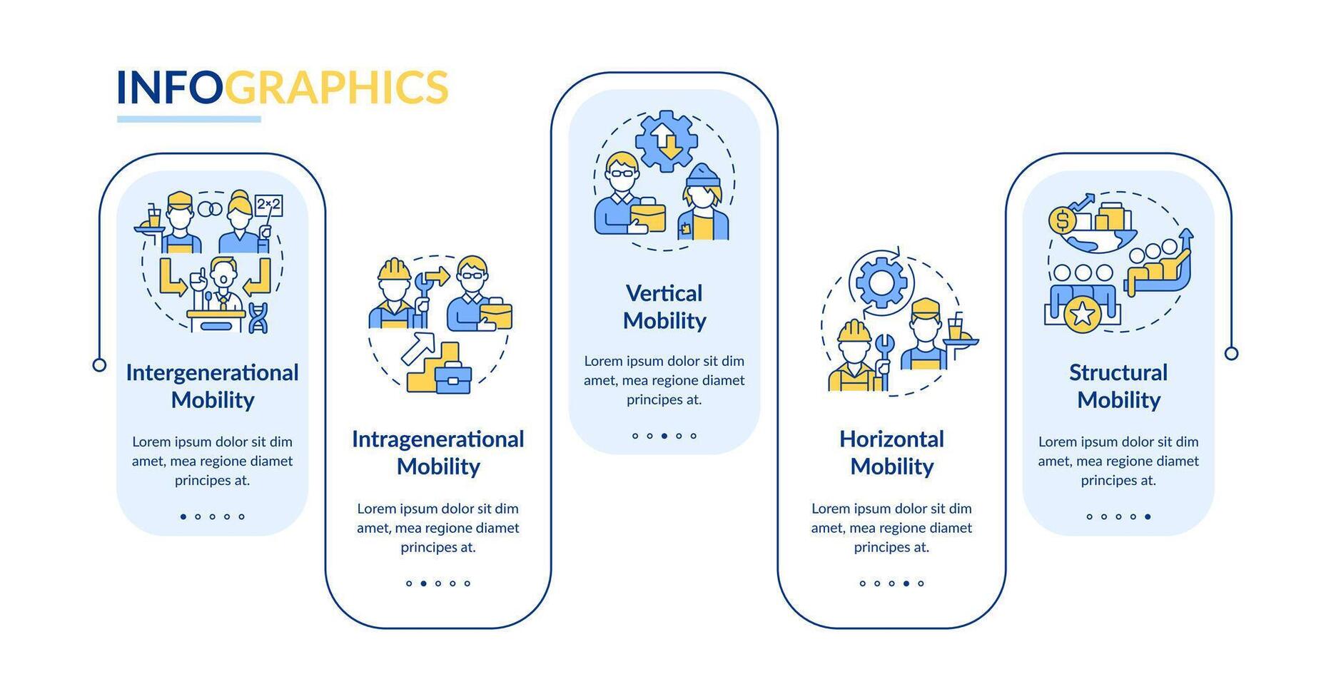 Patterns of social mobility blue rectangle infographic template. Data visualization with 5 steps. Editable timeline info chart. Workflow layout with line icons Pro Vector