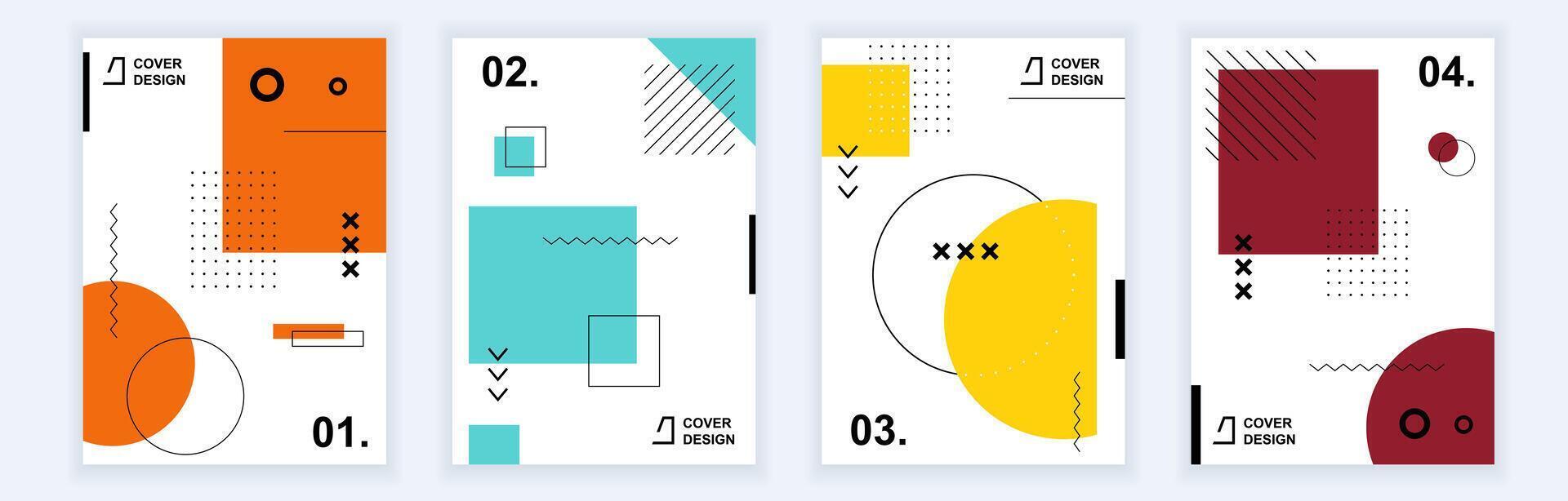 Abstract brochure covers set in modern minimal geometric design. Memphis style background templates with graphic elements and patterns in A4 format for business presentation. Vector illustration Pro Vector