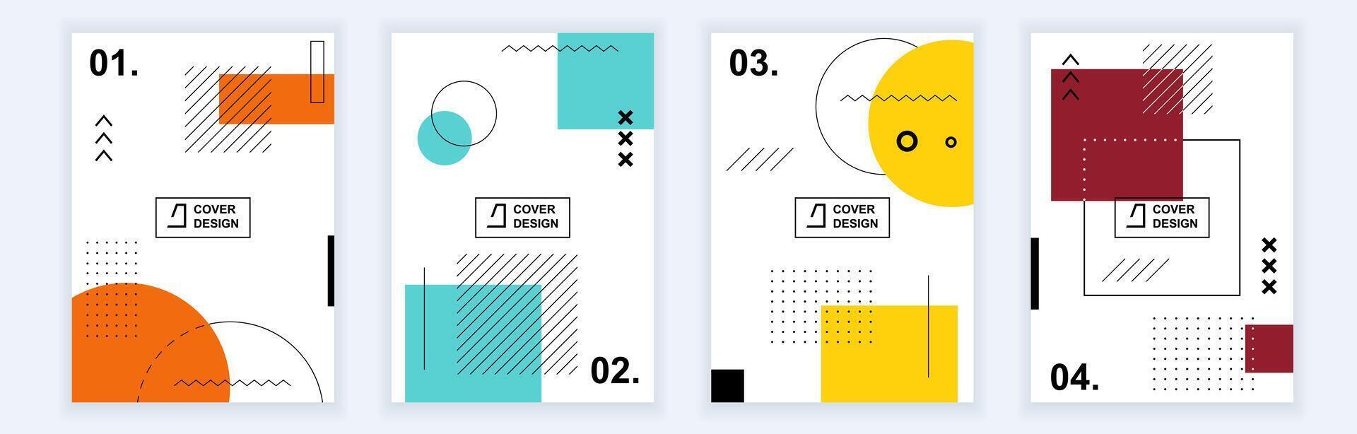 Abstract brochure covers set in modern minimal geometric design. Memphis style background templates with circles, squares and elements composition in A4 format for presentation. Vector illustration Pro Vector