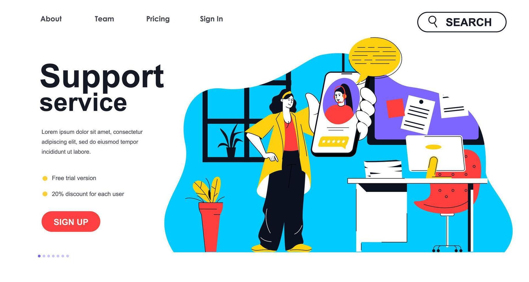 Support service concept for landing page template. Woman talking operator helpdesk. Call center and hotline consulting people scene. Vector illustration with flat character design for web banner Pro Vector