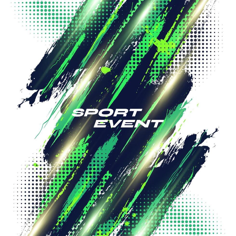Abstract Blue and Green Brush Texture Background with Halftone and Glowing Light Effects. Sport Background with Grunge Style. Scratch and Texture Elements For Design Pro Vector
