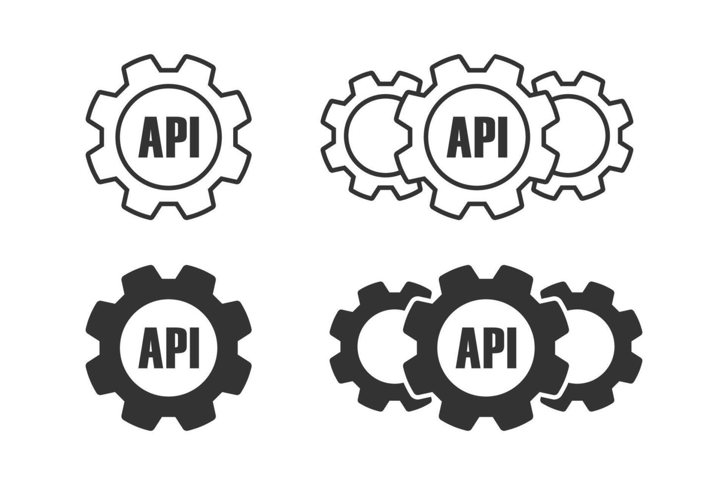 Cogwheel icon with API sign. Api setting icon. Vector illustration. Pro Vector