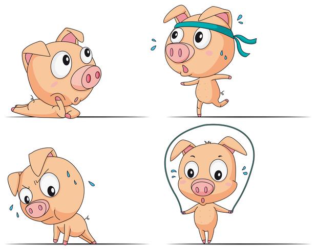 Pig doing different exercises vector
