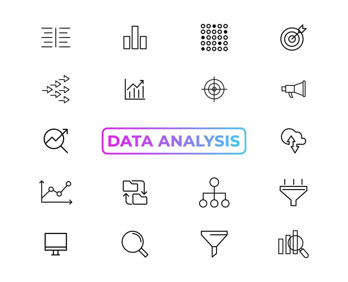 Big data analysis thin line icon set. Data processing outline pictograms for website and mobile app GUI. Digital analytics simple UI, UX vector icons Pro Vector