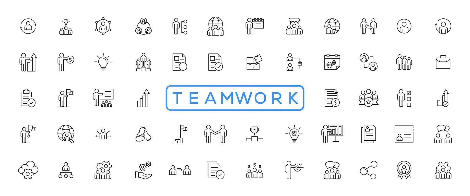 Business teamwork, team building, work group and human resources minimal thin line web icon set. Outline icons collection. Simple vector illustration Pro Vector