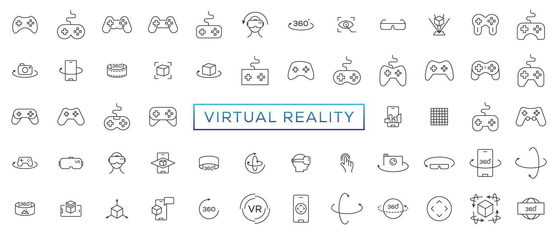Virtual and augmented reality outline vector icons isolated on white background. AR and VR line icon set for web design, mobile apps, ui design and print. Futuristic technology concept Pro Vector
