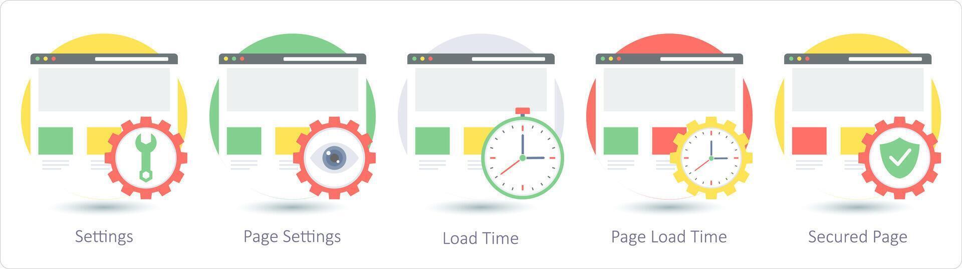 A set of 5 Web Layout icons as settings, page settings, load time Pro Vector