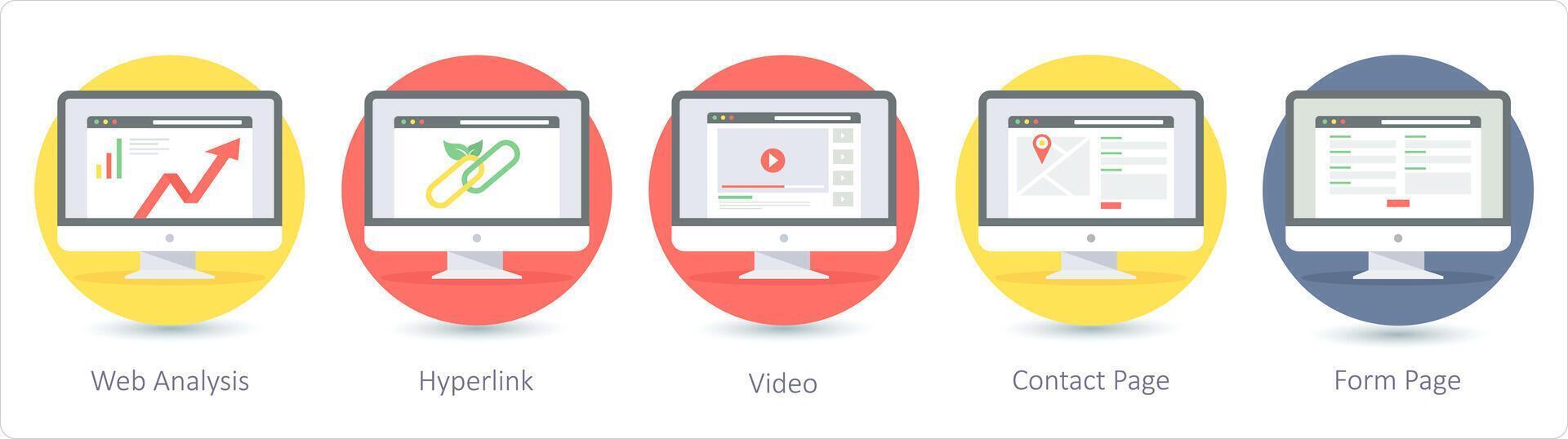 A set of 5 Seo icons as web analysis, hyperlink, video Pro Vector