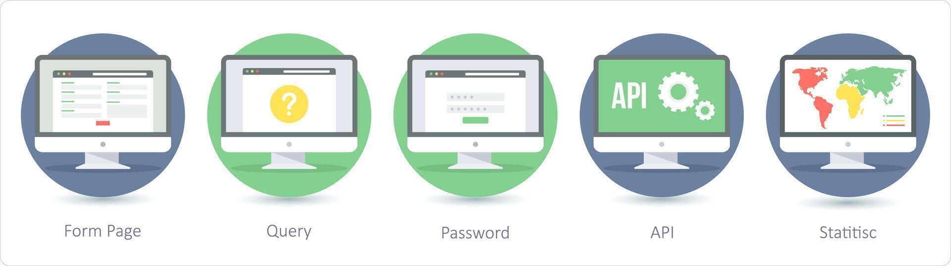 A set of 5 Seo icons as form page, query, password Pro Vector
