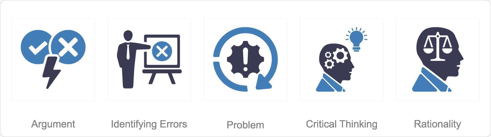 A set of 5 criticalthinking icons as argument, identifying errors, problem Pro Vector