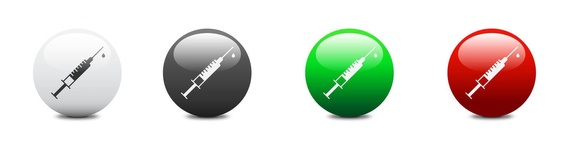 Syringe with drop on a round glossy button, and a shadow under it. Flat vector illustration. Pro Vector
