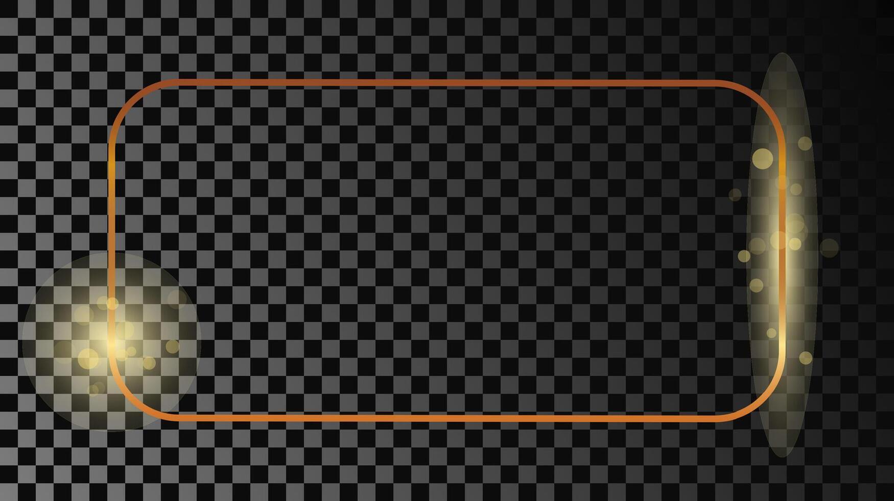 Gold glowing rounded rectangular frame isolated on dark background. Shiny frame with glowing effects. Vector illustration. Pro Vector