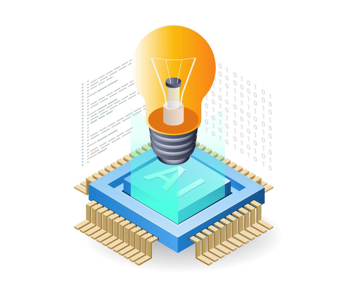 Artificial intelligence idea reference, flat isometric 3d illustration Pro Vector