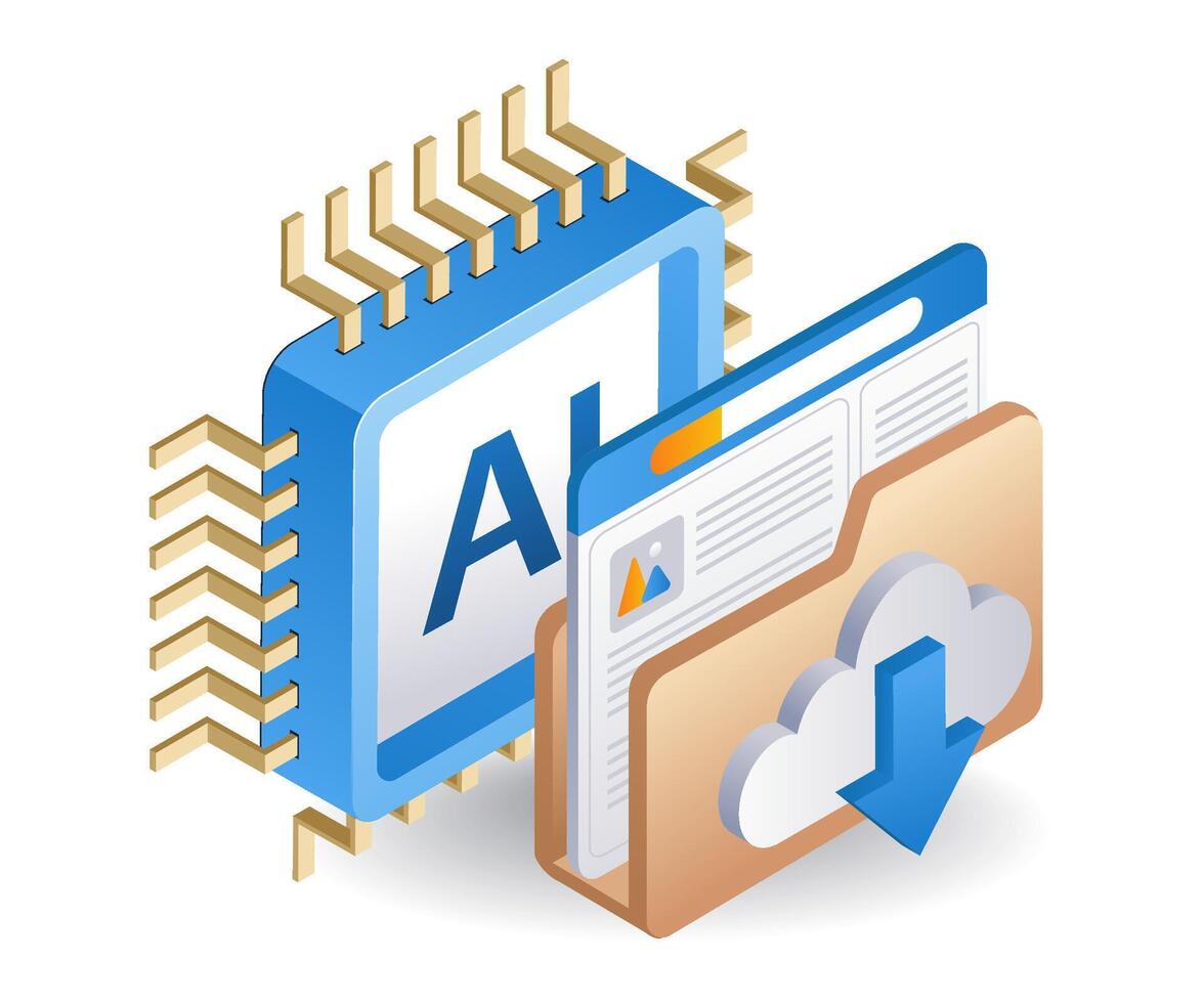 Artificial intelligence data folder download flat isometric 3d illustration Pro Vector
