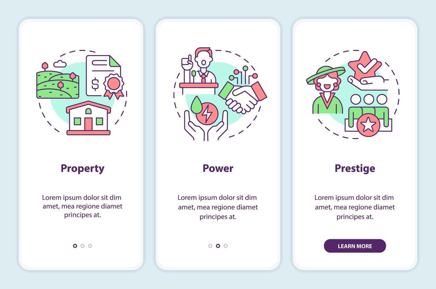 Factors of social stratification onboarding mobile app screen. Walkthrough 3 steps editable graphic instructions with linear concepts. UI, UX, GUI template Pro Vector