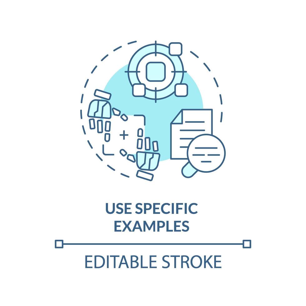 Using specific examples soft blue concept icon. Prompt engineering tips. Provide with concrete information. Round shape line illustration. Abstract idea. Graphic design. Easy to use in article Pro Vector