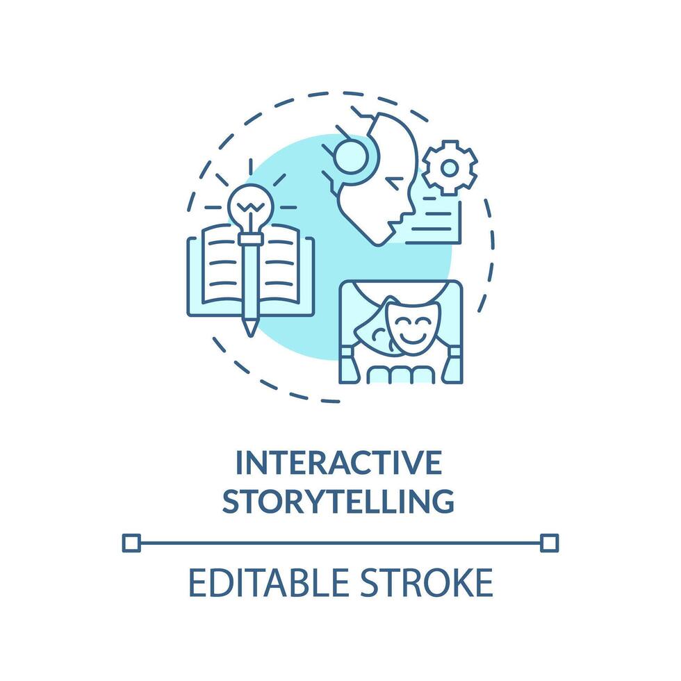 Interactive storytelling soft blue concept icon. Prompt engineering technique. Role playing with chatbot. Round shape line illustration. Abstract idea. Graphic design. Easy to use in article Pro Vector